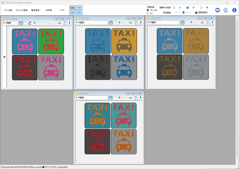 ご利用上の注意 ©TOYO INK Co., Ltd. © artience Co., Ltd. 本ドキュメントの全てあるいは一部を、東洋インキ株式会社(以下東洋インキといいます)および artience株式会社(以下artienceといいます)の許可なく無断で複写、複製、翻訳、改変することは禁じられています。 本ドキュメントに記載された情報は、参考用として供給されており、予告なしに変更することがあります。また、東洋インキおよびartienceは、本マニュアルの誤りや不正確な記述の結果生じるすべての障害について、一切の責を負いません。 本ドキュメントおよびメディア(プログラムおよびデータを格納した媒体)に記載されているすべての情報の版権は、すべて、東洋インキおよびartienceに帰属します。 また、本ソフトウェアに使用されている東洋インキおよびartienceの独自技術は、特許出願中です。 使用許諾に基づくソフトウェアの使用を除き、東洋インキおよびartienceの許可なくその全てあるいは一部を複写、複製、編集、変更、解析、改変および翻訳することは禁じられております。 東洋インキおよびartienceは、色覚ユニバーサルデザイン支援ツールソフトウェア、その付属品および付属ソフトウェアを、プログラム上の瑕疵、バグ、エラー、脱落、欠落、不一致やその他の原因により使用、またはそれを使用できなかったことにより生じた直接的、派生的、付随的または間接的障害(営業上の損害、業務の中断、営業情報の喪失などによる損害を含むがこれらに限定されない)については、例えそのような障害の発生があることについて予め知らされていた場合でも、一切の責を負いません。